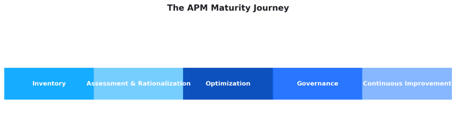 An APM roadmap outlines how an organization moves from fragmented, manual management to a mature, data-driven approach. The following stages mirror best practices used by leading enterprises: