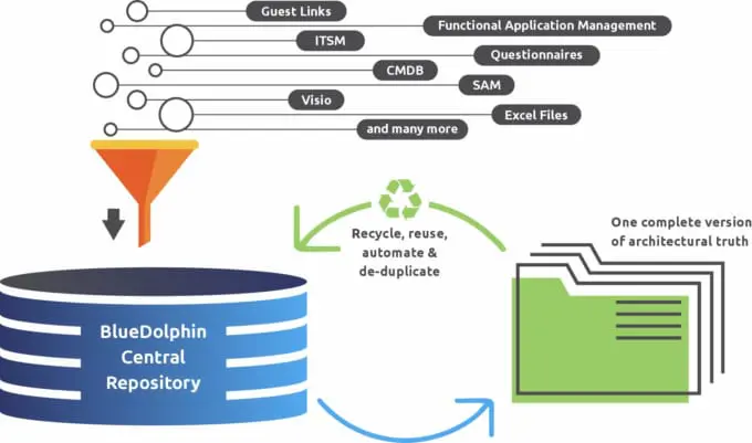 - One central repository and the removal of siloes guarantees accurate and up-to-date application information.